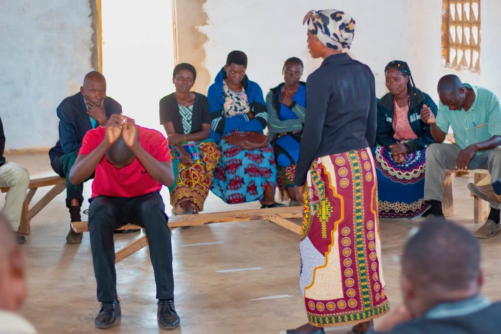 • Middle image: SFHC participatory theatre training session with FRT members, Mzuzu, Malawi 2023. Credit: SFHC